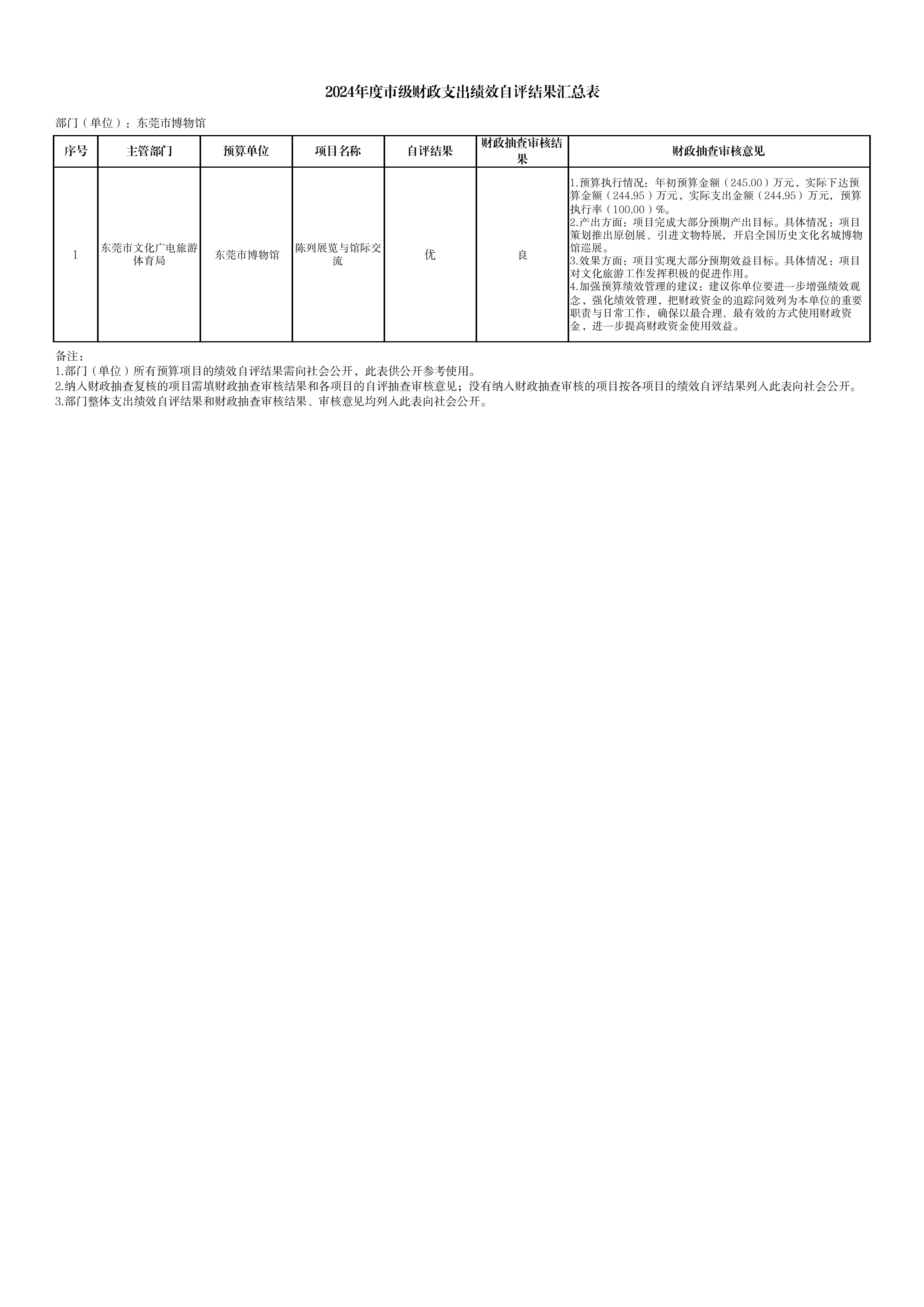 2024年度绩效自评结果汇总表(东莞市博物馆)