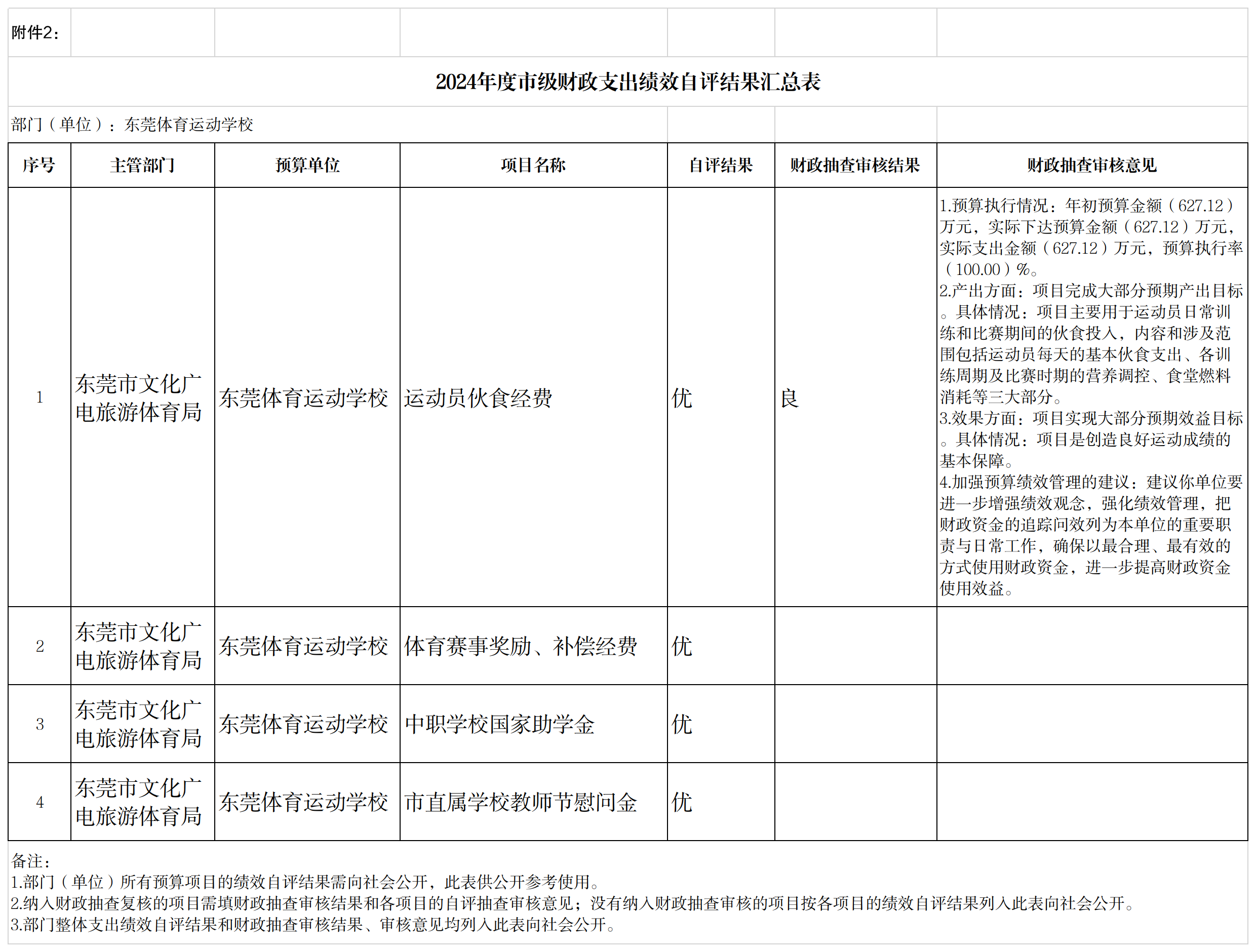2024年度绩效自评结果汇总表(东莞体育运动学校)