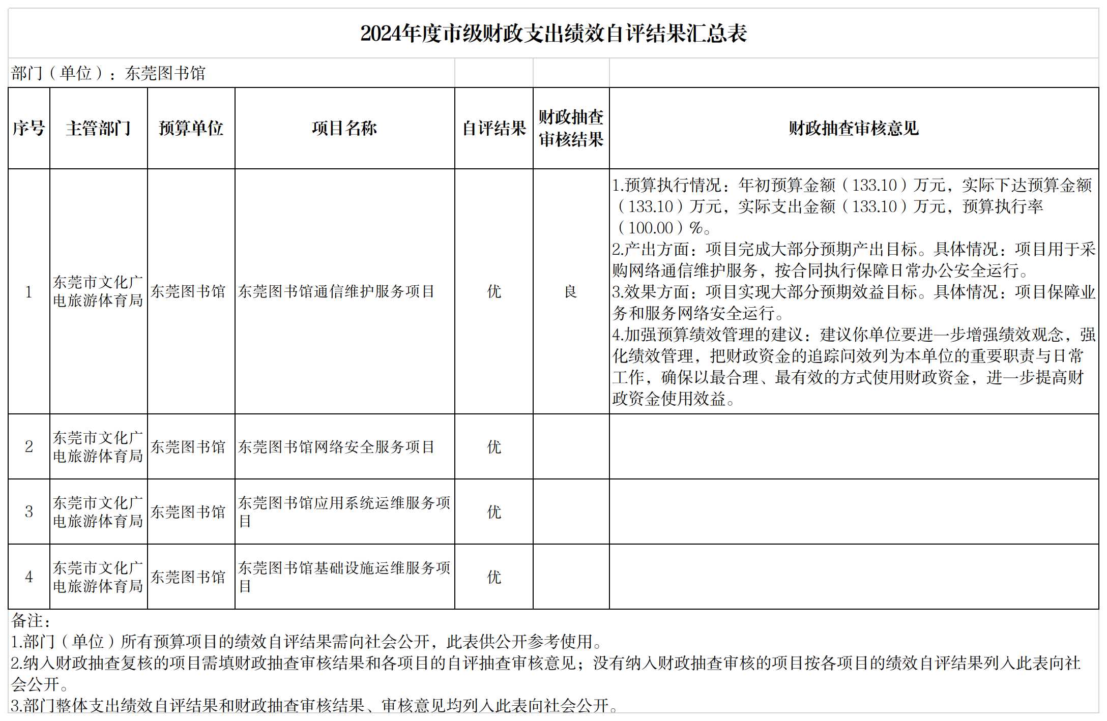 2024年度绩效自评结果汇总表(东莞图书馆)