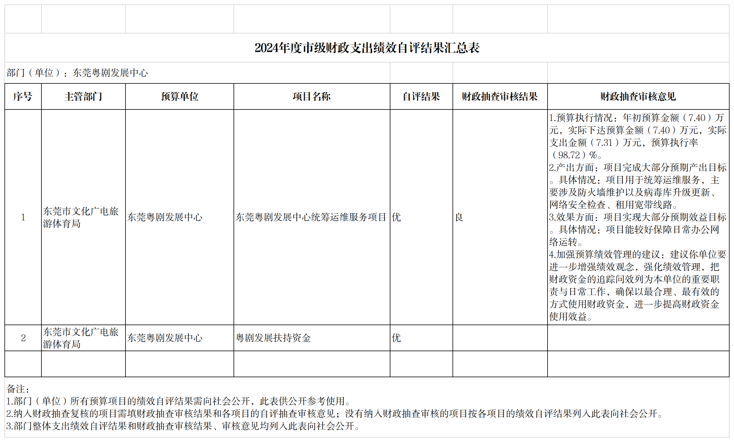 2024年度绩效自评结果汇总表(东莞粤剧发展中心)