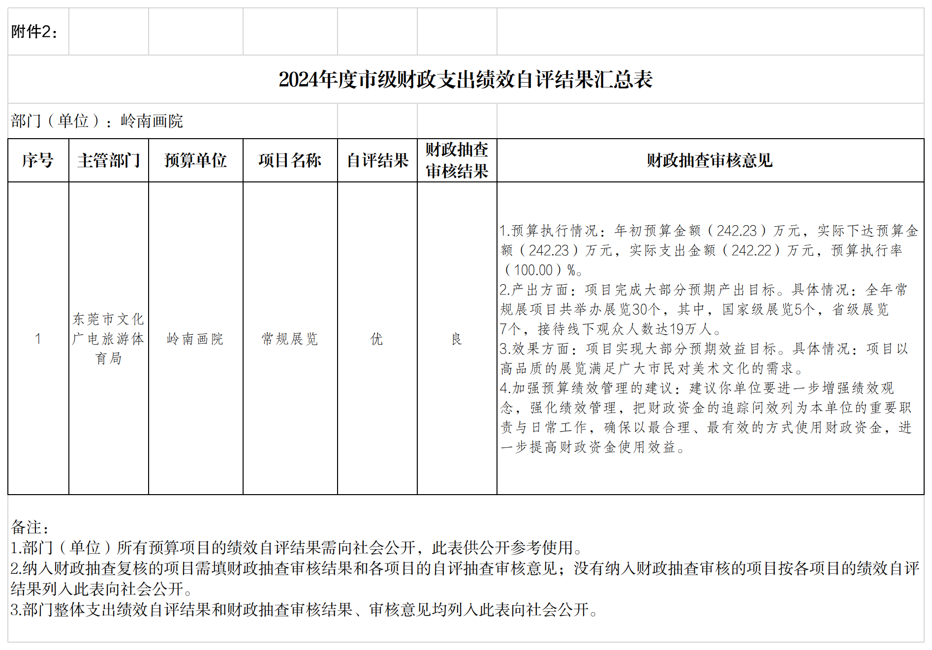 2024年度绩效自评结果汇总表(岭南画院)