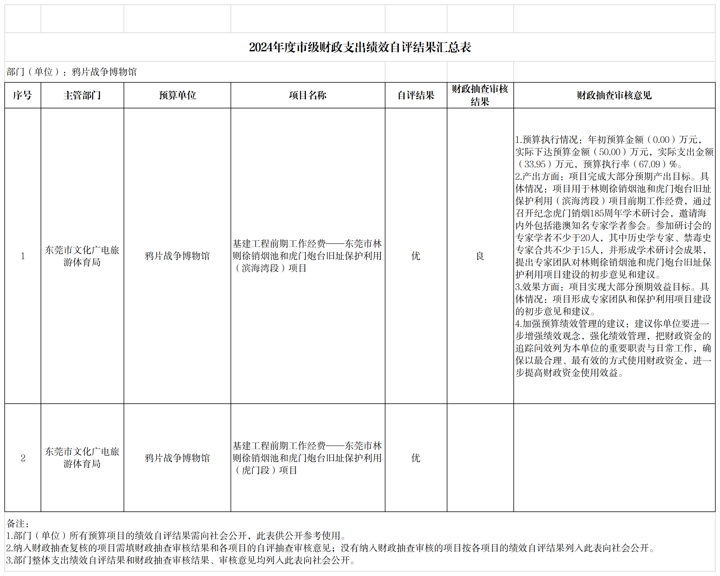 2024年度绩效自评结果汇总表(鸦片战争博物馆)