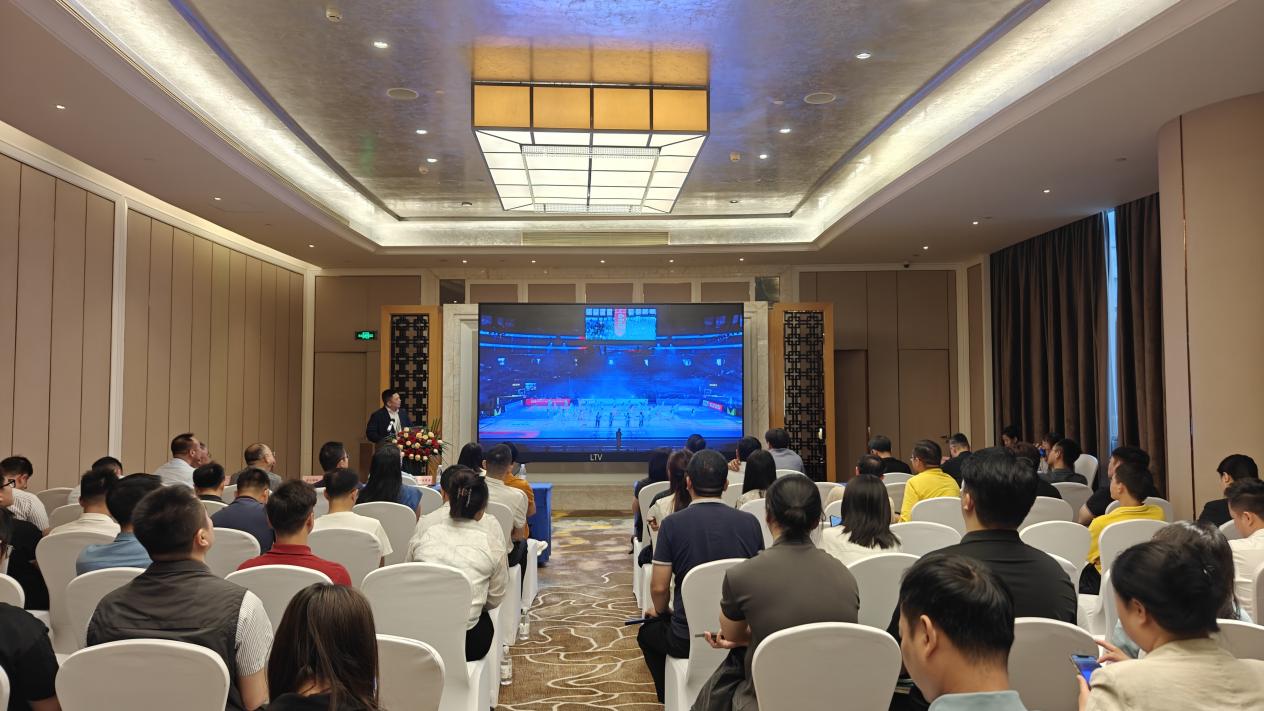 活动开场,播放了镇BA揭幕战场内外活动精彩视频,直观、立体地向参会人员展现三大赛事的火热气氛、发展潜力与商业价值。市场开发与文旅消费组组长、市文广旅体局副局长杨嘉,为本次路演推介做动员讲话,明确提出体育赛事不仅是竞技活动,更是企业品牌出圈、市场破局、口碑升级的黄金赛道,本次三大赛事的核心目标,就是把赛事的 “人气”,转化为城市发展的“景气”,企业经营的 “财气”。赛事执行方针对粤BA、粤超、镇BA的招商权益方案,开展了分层级、全维度的专项讲解,讲解内容紧扣不同赛事的覆盖范围与受众特点,通过统计数据、现场图片、广告展示、活动内容等多面展示,对赞助商的权益进行了深刻讲解,清晰明确了各项合作权益的落地标准与执行保障,打通政企对接的信息壁垒,让参会企业对赛事市场开发工作、商业价值有了全面、清晰的掌握。